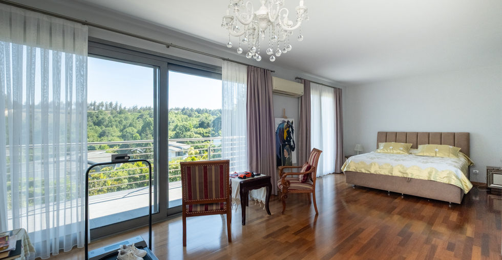 – Tripleks villa– 5+2 | 400 m² kullanım alanı– Özel bahçe ve terasa sahip– Ebeveyn banyolu büyük yatak odası– Giyinme odası– Modern yerden ısıtma sistemi– Yeşil alan ve havuz manzarası